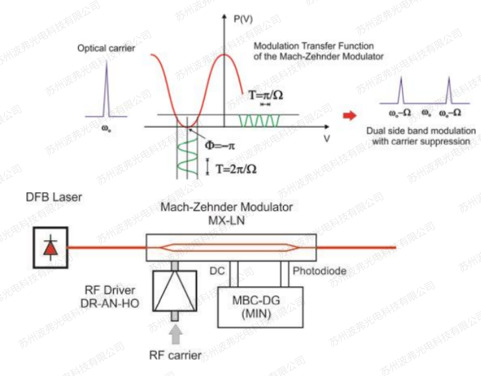 产生边带进行移频,扫频或者光谱展宽等应用,可以通过强度或者相位调制器来实现,不同的要求则需要选择不同类型的调制器。一般来说,我们分成2种:保留载波和抑制载波(入射光频率)。
