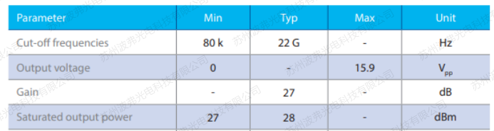 2. 相位调制器所需的驱动电压高于强度调制器,在高频应用时(例如>30GHz)可能很难找到合适的驱动放大器输出10Vpp以上的电压