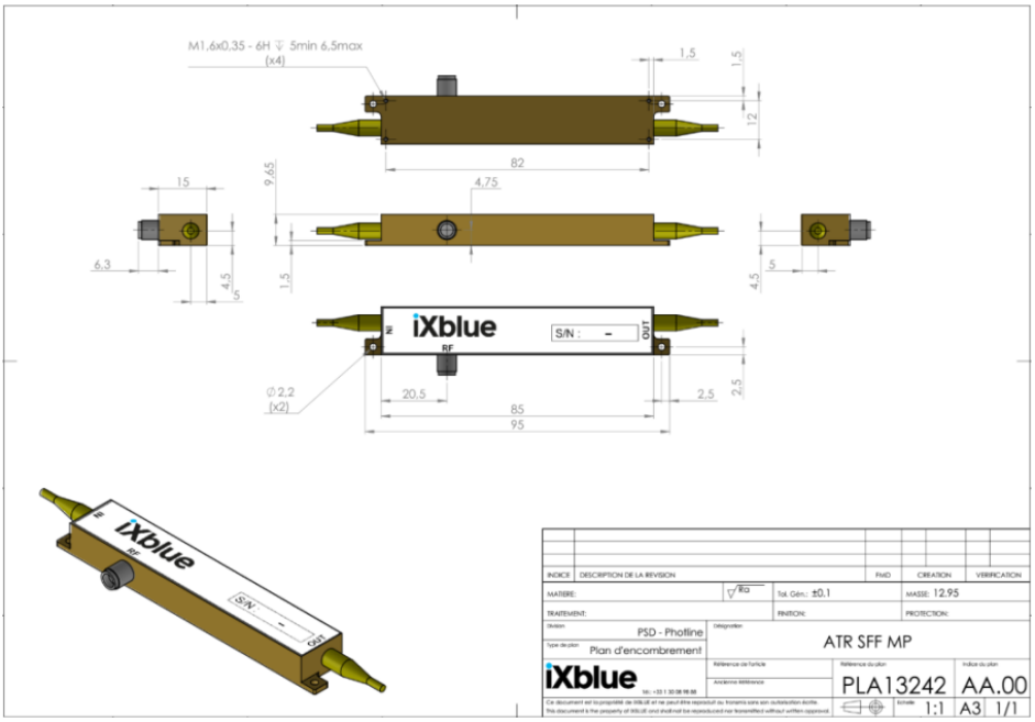 新型近红外铌酸锂相位调制器NIR-MPZ-LN-20是法国iXblue公司最新研发设计的20GHz,低插损、低半波电压950-1150nm波段相位调制器,最大光功率+25dBm,最大射频功率为+33dBm;非常适合于激光合束、光谱展宽、激光频率梳等应用。
