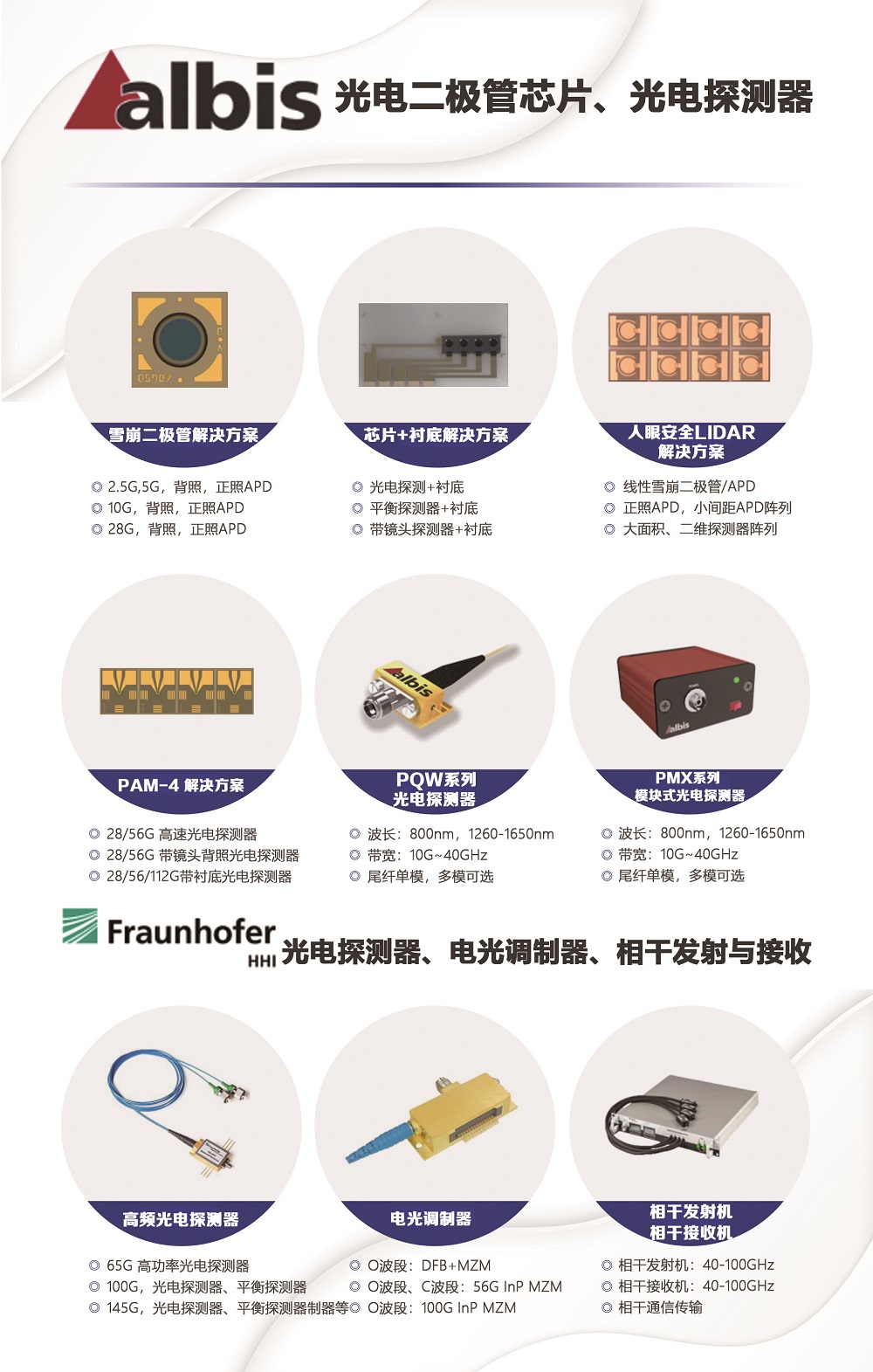 (8)Albis:光电探测器芯片 & Fraunhofer HHI 100GHz+光电探测器,电光调制器