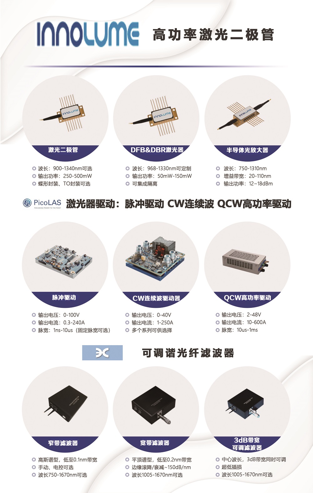 (9)Innolume 激光器二极管,半导体光放大器 & WLPhotonics 可调谐光纤滤波器