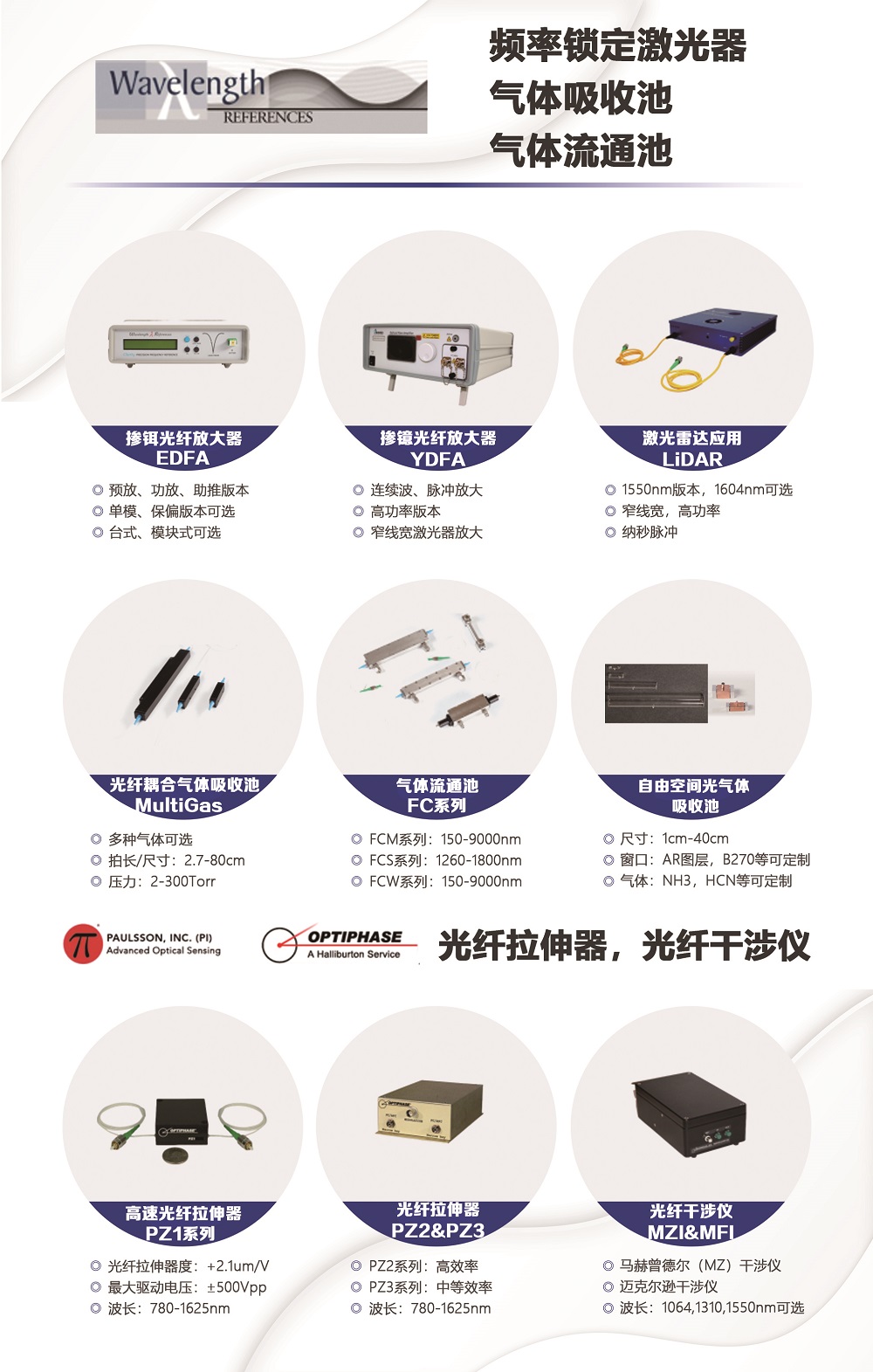 (11)Wavelength References 气体流通池/气体参考池 & PAULSSON/OPTIPHASE 光纤拉伸器,光纤干涉仪