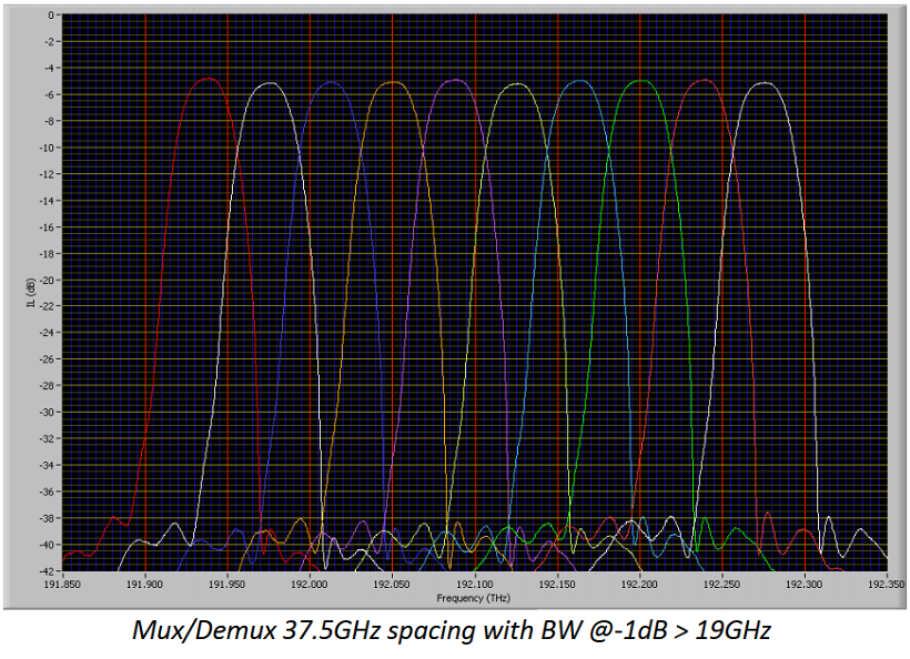 由于我们技术的多功能性,我们能够提供最完整的DWDM Mux/Demux范围,间隔从6.25GHz到400GHz。