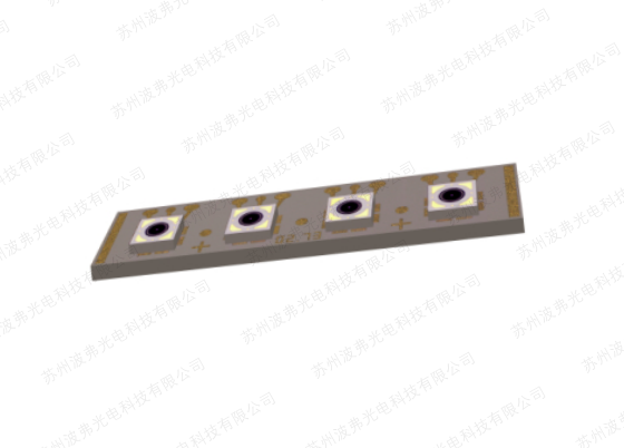 底部照明的4通道光电二极管阵列倒装焊接在具有环绕金属化的陶瓷底座上。